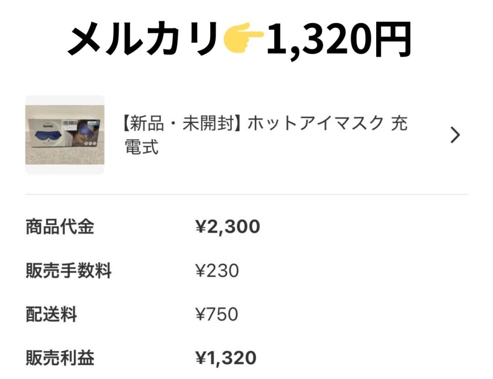 ただで仕入れた商品をメルカリで販売して得た利益です。