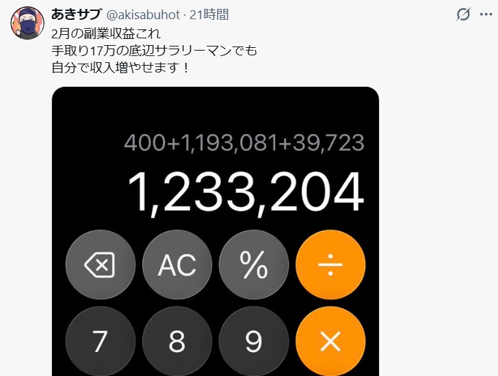 カンタンお手軽不労所得 pic.twitter.com/4HTKYFNE9s— あき@副業で貧乏脱出したパパ (@Akraft3594) March 7, 2026